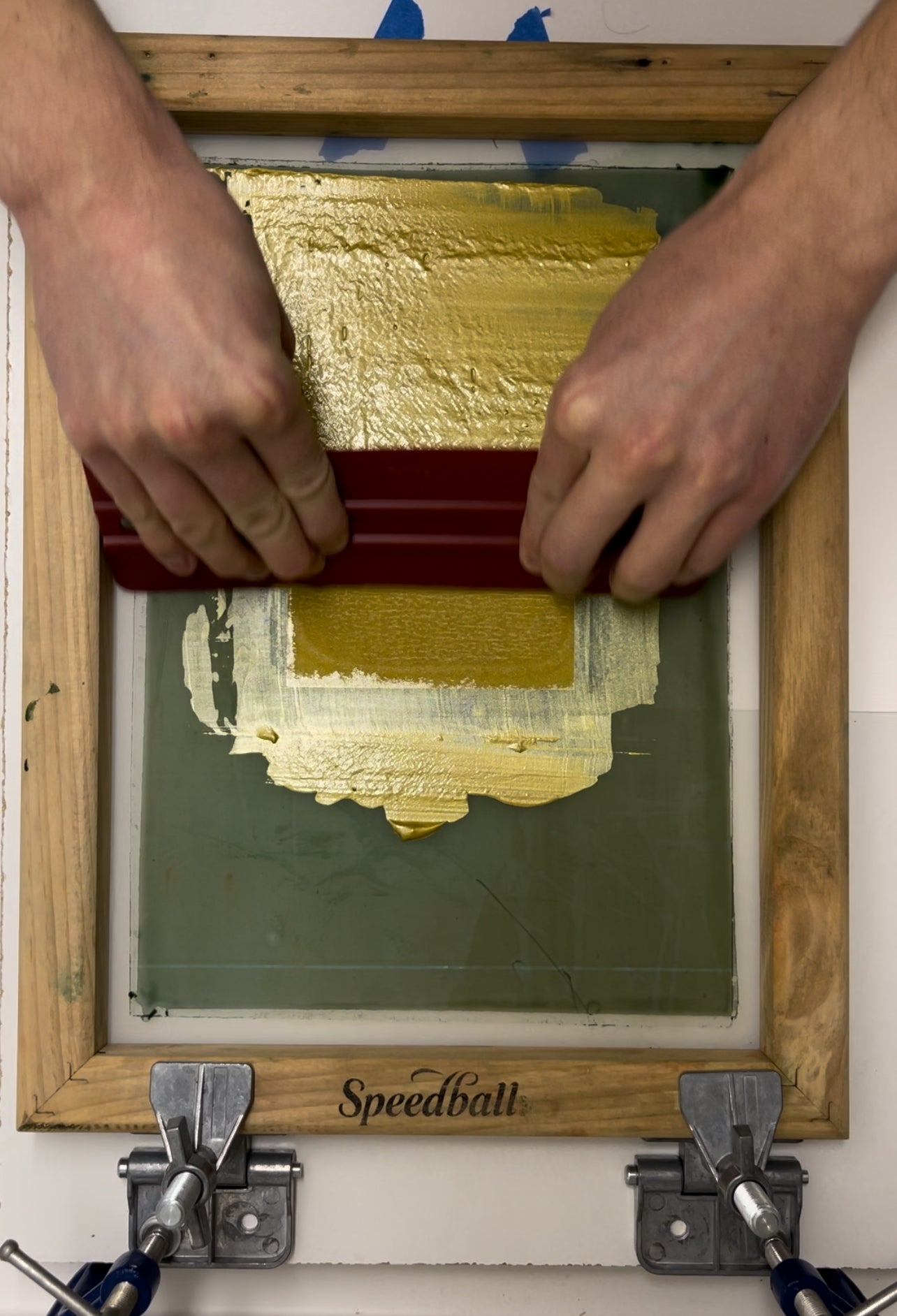 For anything that can't run through the printer, it most often can be screen printed. Print on paper, cardboard, fabric, wood, glass, walls, doors, or any surface you can think of.